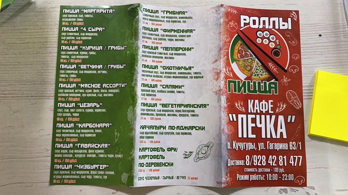Welcome to Pechka 'Pitstsa Na Drovakh', a hidden gem located on Ulitsa Gagarina in Kuchugury, Krasnodar Krai. This cozy eatery not only boasts an inviting atmosphere but also offers a diverse menu that captures the essence of comfort food.
